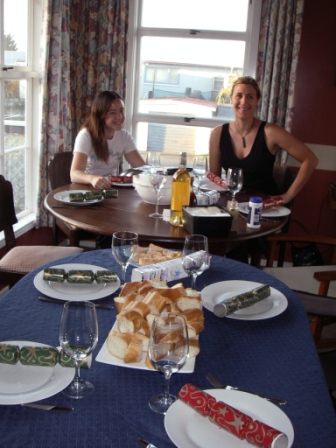 Noël chez les copains! Foie gras, saumon, pain frais! Ne nous plaignez pas! Tout va bien!
