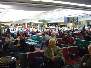 grrr ; je suis contrariée. Mais voilà l'aeroport de Londres